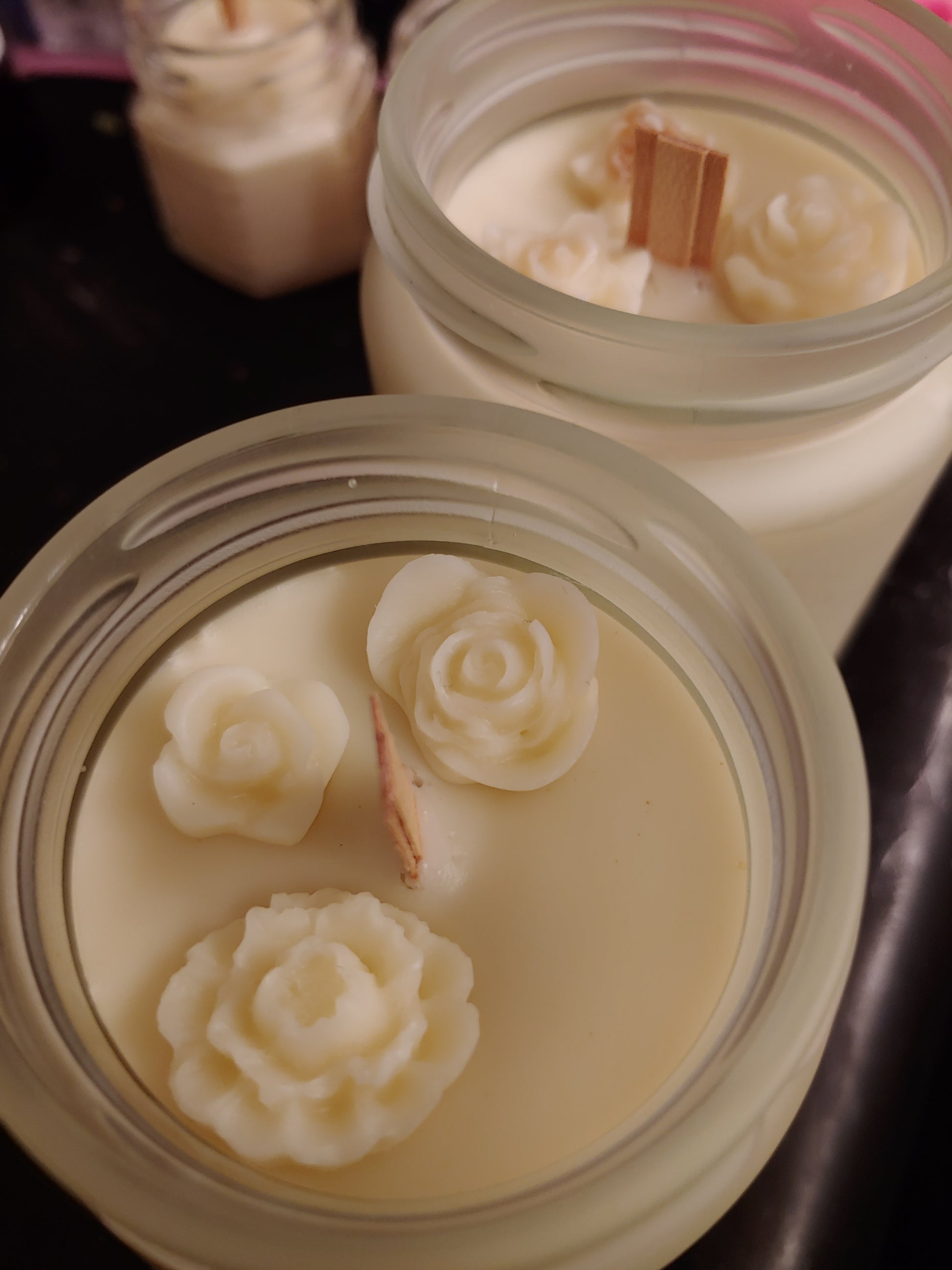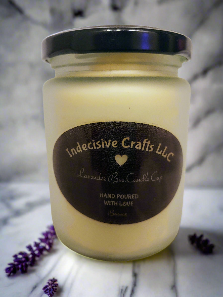 Indulge in a custom-made 8oz beeswax candle, available with either a wood-wick or cotton-wick. Enjoy the aromatic Lavender fragrance through your home.